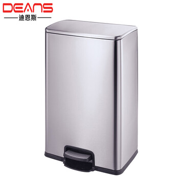 迪恩斯(DEANS)不锈钢脚踏方桶垃圾桶大号带盖厨房商用室内办公室脚踩垃圾桶开盖缓降上盖防指纹30升