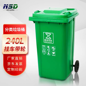 纽仕达/新国标240L带轮可挂车分类垃圾桶商用户外环卫室外大号带盖翻盖大垃圾桶/厨余垃圾【可免费印制LOGO】