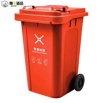 领象 全国标准分类垃圾桶大号 户外环卫大垃圾桶加厚物业小区分类塑料带盖垃圾桶 红色240L有害物