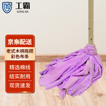 工霸(GONGBA)老式木柄拖把 加长加粗木杆吸水彩色布条拖把墩布拖布(5把)定制