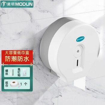 莫顿(MODUN) 卫生间挂壁纸巾盒可免打孔塑料圆形纸巾盒 加厚M-5826白色卷纸盒+卷纸1个+免钉螺丝