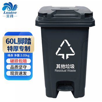 兰诗 XD-60 新国标户外脚踏分类垃圾桶酒店物业环卫小区果皮箱 60升黑色-其他垃圾