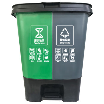 安赛瑞 分类脚踏垃圾桶 新国标加厚分类垃圾箱 68L 户外大号工业商用环卫塑料垃圾箱 绿色700063