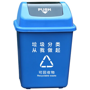 益美得 塑料摇盖分类垃圾桶大号办公室物业学校垃圾箱 40L蓝色(可回收物)