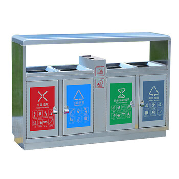 者也 户外分类垃圾桶不锈钢果皮箱室外公园小区物业环卫垃圾箱大号商用 B2304【四分类】不锈钢