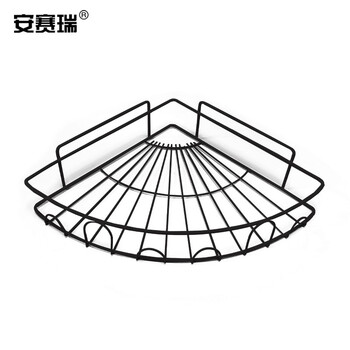 安赛瑞 浴室三角置物架 免打孔厨房卫生间厕所转角墙上收纳洗漱台 铁艺收纳架 黑色 711010
