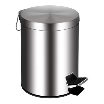 庄太太【5L20.5*28.6cm(410不锈钢】不锈钢砂光拉丝圆形脚踏式垃圾桶