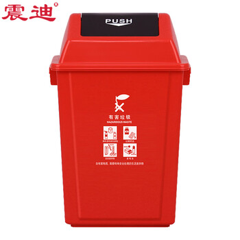 震迪 塑料垃圾桶 60L含盖上海分类款 (有害垃圾)弹盖红色大号垃圾桶工业垃圾桶可定制 KT573酒店垃圾桶