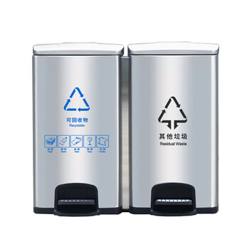 益美得 LD-1004 不锈钢脚踏垃圾桶酒店办公室单位干湿脚踩分类垃圾桶静音带盖 可回收+其他40L