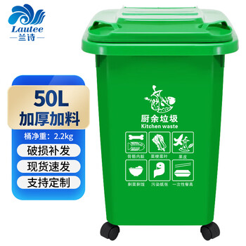 兰诗(LAUTEE)D060 大号户外垃圾桶 物业分类垃圾桶果皮箱可定制 50L四轮草绿厨余垃圾