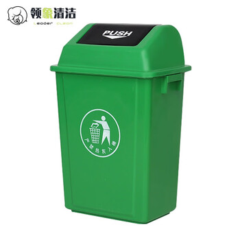 领象 大垃圾桶大号商用环卫户外带盖翻盖室内外塑料弹盖医疗酒店小区垃圾桶垃圾箱 绿色40L