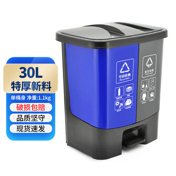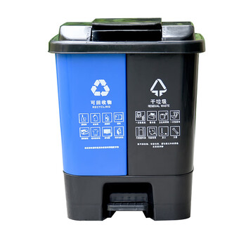 庄太太 【40升蓝黑双桶】上海分类垃圾桶干湿双桶脚踏式干湿分离垃圾桶带盖双桶环卫户外垃圾桶翻盖