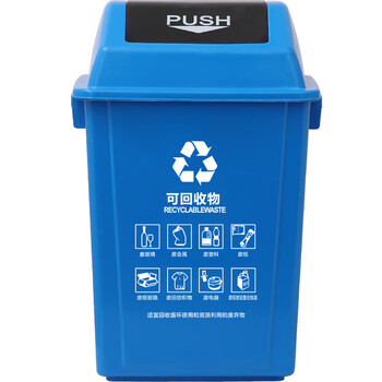 纽仕达 上海|40L升干湿分类垃圾桶摇盖带盖户外环卫分离大号商用厨房 蓝色可回收物 【可免费印制LOGO】
