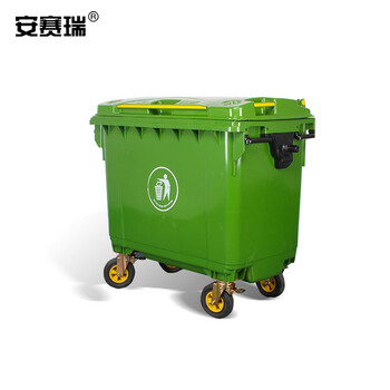 安赛瑞 环卫保洁垃圾车 手推垃圾车 660L 大容量塑料环卫垃圾车 户外物业清洁车 绿色 26849