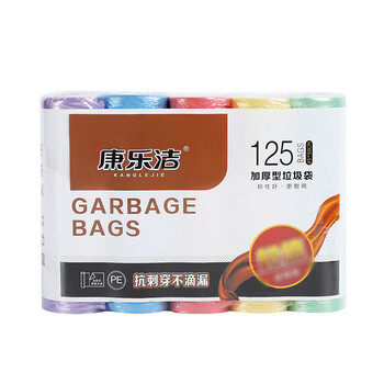 康乐洁 K-105 平口垃圾袋厨房办公室加厚一次性塑料袋 45*50cm 125只 颜色随机