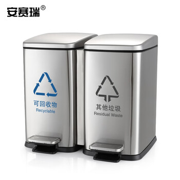 安赛瑞 不锈钢分类脚踏式垃圾桶 10L×2 酒店办公干湿垃圾分类桶 学校商场电梯口室内外连体分类垃圾箱 700184