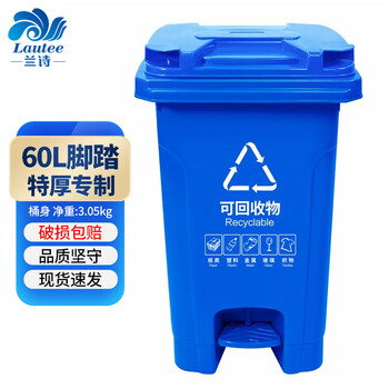 兰诗(LAUTEE)XD-60 户外脚踏分类垃圾桶 酒店环卫果皮箱 新国标60升蓝色-可回收物