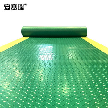 安赛瑞 PVC防滑地垫 车间过道工业地板垫 1.2×5m 带黄色警示边钢板纹 人字钢板纹塑料耐磨地垫 绿色 710948