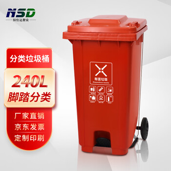 纽仕达/新国标240L脚踏带轮分类垃圾桶商用户外环卫室外大号带盖大垃圾桶/有害垃圾【可免费印制LOGO】