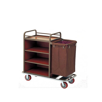 庄太太【单边铁木布草车】新布草车酒店双边客房工作车收纳布草车房口车清洁服务车推车