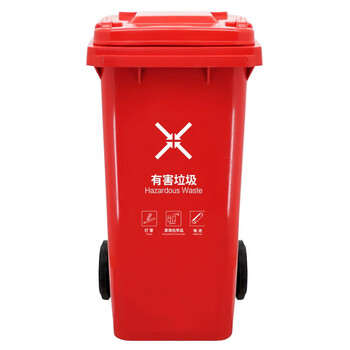 中典 垃圾分类垃圾桶YY-120A新国标大号物业室内外小区环卫户外商用定制带盖垃圾桶红色120L-有害垃圾