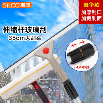 斯图擦玻璃刮水器伸缩杆窗户玻璃清洁延长杆涂水器擦窗擦玻璃工具玻璃清洁刮刀三件套 豪华型2.4伸缩款35cm