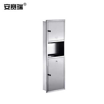 安赛瑞 304不锈钢二合一擦手纸箱 商用卫生间一体机手纸箱烘手机纸巾盒 带垃圾桶箱组合柜 嵌入式直边 710286