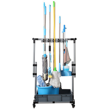 莫恩克 可移动拖把扫把架多功能挂架学校酒店商场清洁工具收纳架不锈钢伸缩10挂12钩