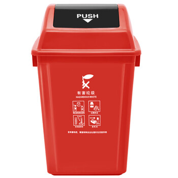 兰诗(LAUTEE)D033 摇盖分类垃圾桶 户外环卫大号干湿垃圾桶可定制 60L红色有害垃圾
