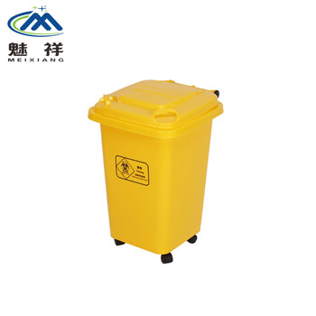 魅祥 带盖医用垃圾桶诊所医院废物黄色医疗回收带轮卫生箱利器盒 30L万向轮