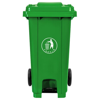 益美得 脚踏户外垃圾桶大号商用环卫垃圾箱果皮桶街道小区街道带轮 120L绿色