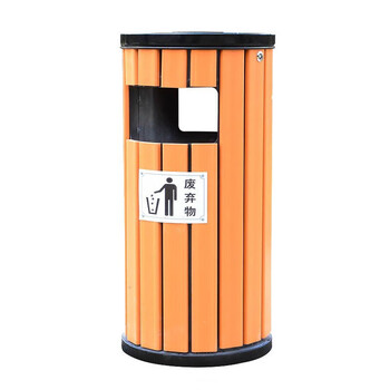 者也 户外垃圾桶 不锈钢木桶垃圾箱小区景区商场果皮分类大号环保垃圾桶 黄色5112