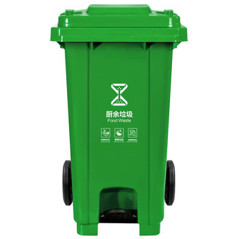 益美得 新国标脚踏分类垃圾桶户外大号环卫垃圾桶 脚踏100L绿色(厨余垃圾)