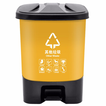 兰诗(LAUTEE)HX-30 脚踏分类垃圾桶 物业办公室带盖单格垃圾桶 30L黄色-其他垃圾