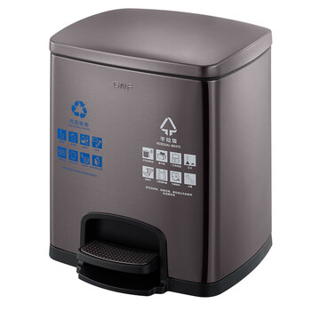 南 SJ15-F01F 南方方形脚踏分类桶 黑金 15L容量 酒店商场分类垃圾桶 带盖果皮桶 不锈钢大号垃圾桶