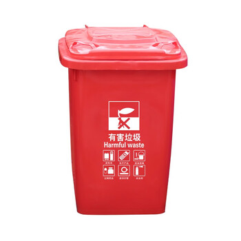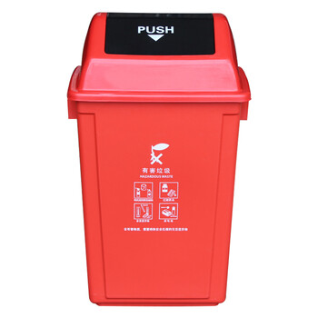 莫恩克 塑料分类翻盖垃圾桶 方型弹盖垃圾桶 大号办公室楼道走廊收纳桶 环卫果皮桶 60L红色(有害垃圾)
