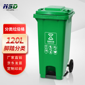 纽仕达/新国标120L脚踏带轮分类垃圾桶商用户外环卫室外大号带盖大垃圾桶/易腐垃圾【可免费印制LOGO】