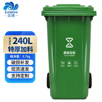 兰诗 YY- 240B 新国标可挂车户外环卫物业大号分类垃圾桶 绿色-厨余垃圾240L