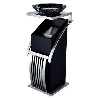 科力邦(Kelibang)不锈钢垃圾桶 宾馆酒店新概念欧式垃圾桶会所走廊电梯烟灰桶方型黑白根盆 KB1073 不锈钢