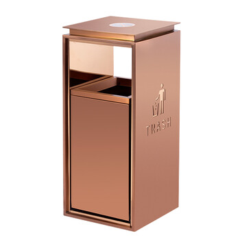 兰诗 酒店不锈钢垃圾桶商场电梯果皮箱物业防指纹推拉垃圾筒DB6041 玫瑰金大号禁烟