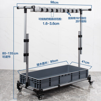 庄太太【98cm复合管16挂20钩】不锈钢可移动落地式清洁工具收纳架子