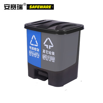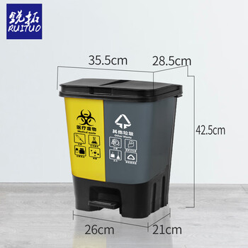 锐拓分类垃圾桶脚踏干湿分离双胞胎桶公司酒店大堂政府学校塑料户外垃圾箱20L