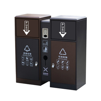 庄太太【双桶黑灰推盖】户外垃圾桶公园小区多分类果皮箱室外不锈钢城市景区垃圾筒可定制