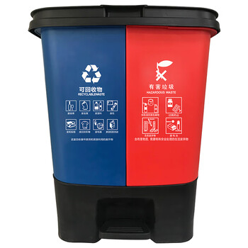 纽仕达 20L升户外双桶分类垃圾桶干湿分类分离上海商用脚踏拉圾桶 蓝红色(有害垃圾/可回收物)