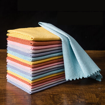 庄太太【10条【25*25cm】彩色】加厚擦玻璃鱼鳞抹布不沾油双面珊瑚绒懒人抹布