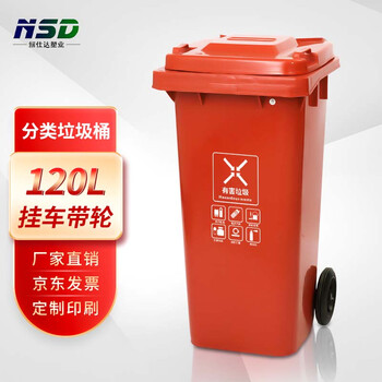 领象 【苏州分类】垃圾桶大号分类大垃圾桶厨余户外环卫加厚小区物业酒店学校 红色50L 有害垃圾