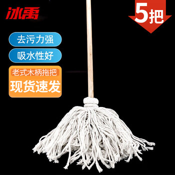 冰禹 BY-1249 老式木柄拖把 木杆棉线拖布 线条墩布 白色(5把/件)