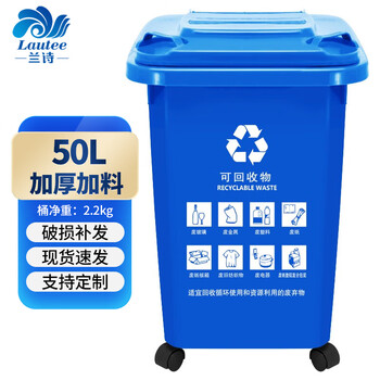 兰诗(LAUTEE)D060 大号户外垃圾桶物业环卫分类桶果皮箱可定制 50L四轮蓝色可回收物