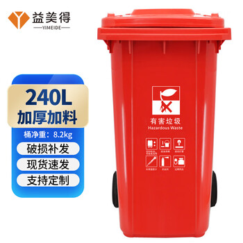 益美得 新款分类垃圾桶酒店大号环卫物业商用走廊户外垃圾桶 20L红色(有害垃圾)