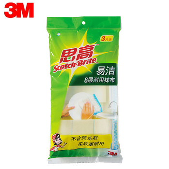 3m 易洁百洁布8层耐用型抹布天然材质清洁布3片装洗碗布不易沾油XY003848559定做1箱(48包)